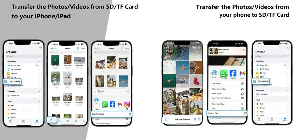 【Multi-function Fast Transfer Speed】Two-way transfer suitable for iOS 13 -16 device. Import data from SD/TF/CF card to phone/pad, or export the file from phone/pad to SD/TF/CF card.